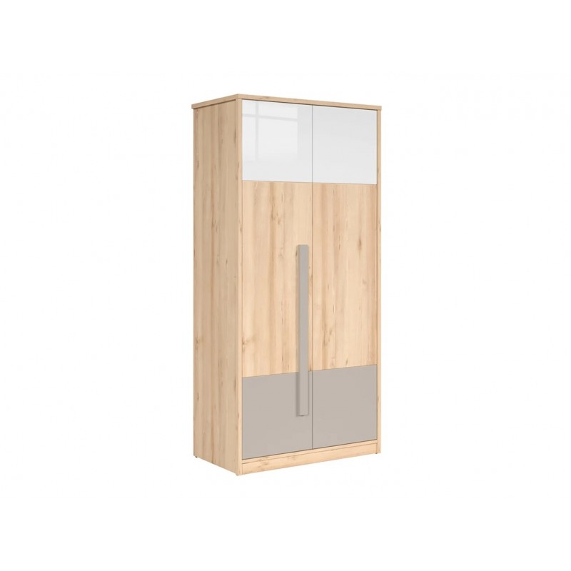 Proste formy, neutralna kolorystyka i funkcjonalność to cechy mebli z kolekcji Namek, która utrzymana jest w nowoczesnym stylu. W pokoju dziecka nie może zabraknąć pojemnej szafy Namek, w której zmieszczą się codzienne ubrania oraz szkolny mundurek. Zachowanie porządku ułatwi szeroka górna półka i drążek na wieszaki. Sezonowe ubrania możesz ukryć w pojemnikach i ustawić na dole szafy. Korpus w kolorze buk iconic stanowi obramowanie dla frontu łączącego 3 kolory: biały połysk, buk iconic i jasny szary. Takie uniwersalne wybarwienie sprawia, że meble pasują do pokoju dziecka, niezależnie od płci i wieku. Wygodny dostęp do zawartości mebla zapewnia prosty uchwyt, dopasowany do stylu mebla.