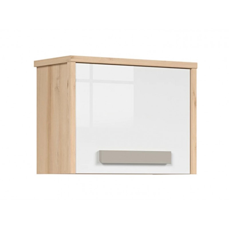 Sposób na łatwe i proste miejsce dodatkowe na przechowywanie? Szafka wisząca Namek sprawdzi się idealnie. Za frontem znajdziesz miejsce na pamiętnik lub stare zeszyty. Korpus w kolorze buk iconic stanowi oprawę dla frontu w kolorze biały połysk. Uniwersalne kolory sprawiają, że szafka pasuje zarówno do pokoju dziewczynki, jak i chłopca. Za uchwyt służy prosta listwa w kolorze jasny szary, która ułatwia codzienne użytkowanie mebla. Kompaktowe rozmiary szafki sprawiają, że możesz ją zawiesić w dowolnym miejscu rozbudowując możliwości biurka lub regału.