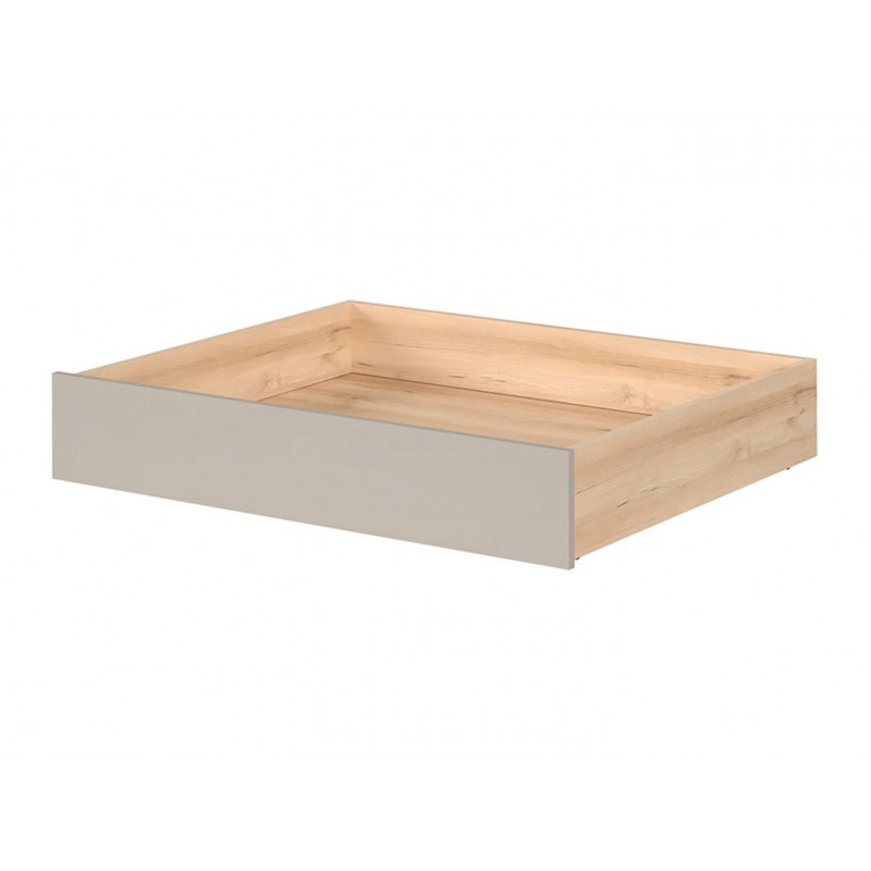 Szuflada Namek to doskonały magazyn na zabawki, zapasową pościel lub osobiste szpargały dziecka i nastolatka. Pojemna szuflada to świetny sposób na zagospodarowanie wolnej przestrzeni pod łóżkiem. Aby łatwo korzystać z szuflady i swobodnie wysuwać ją spod łóżka wyposażyliśmy ją w rolki. Korpus w kolorze buk iconic zestawiono z frontem szuflady w kolorze szary jasny, co sprawia że nawiązuje kolorystyką do całości kolekcji. Wykorzystaj szufladę do łóżka Namek do rozbudowania możliwości kolekcji. Zestawiaj ze sobą dowolne moduły i stwórz przestrzeń, która sprzyja nauce, rozrywce i odpoczynkowi Twojego dziecka.