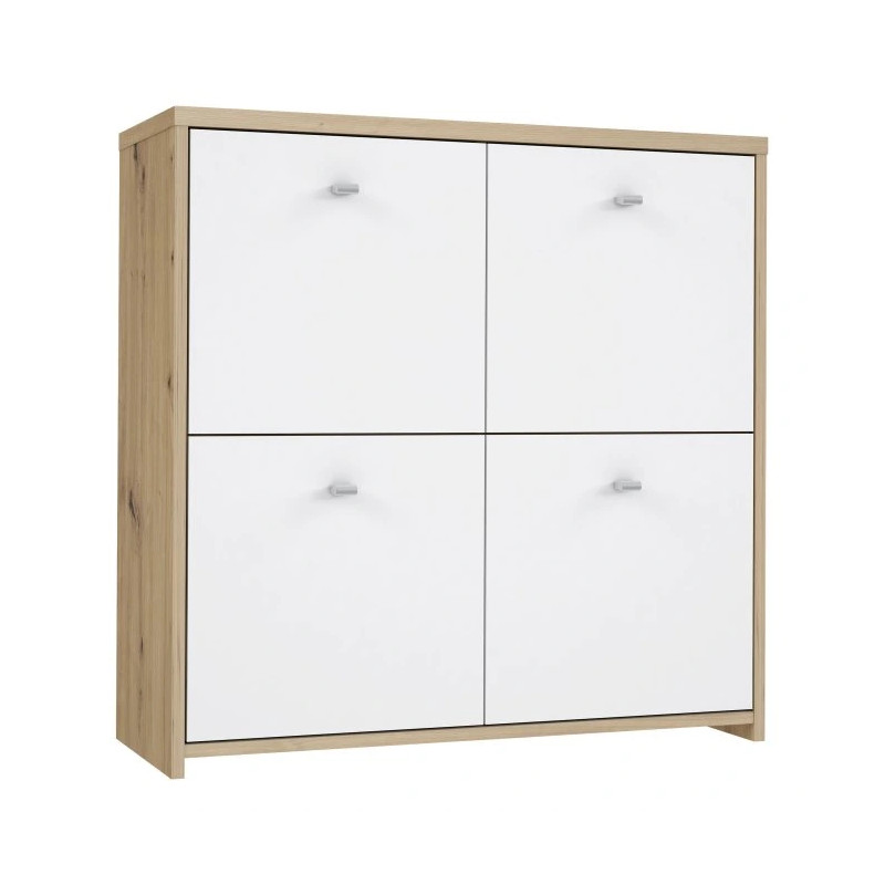 Nowoczesna komoda szeroka z kolekcji Dąb Artisan/Biały to doskonałe połączenie funkcjonalności i eleganckiego stylu. Szerokość 77 cm zapewnia komfortowe użytkowanie, a cztery pojemne szafki oferują mnóstwo przestrzeni do przechowywania niezbędnych przedmiotów. Jasne, białe fronty w zestawieniu z ciepłym dekorem Dąb Artisan optycznie rozjaśniają i ocieplają wnętrze, czyniąc mebel doskonałym wyborem do salonu, jadalni, sypialni czy przedpokoju. Komoda idealnie komponuje się z pozostałymi elementami kolekcji, tworząc spójną aranżację.