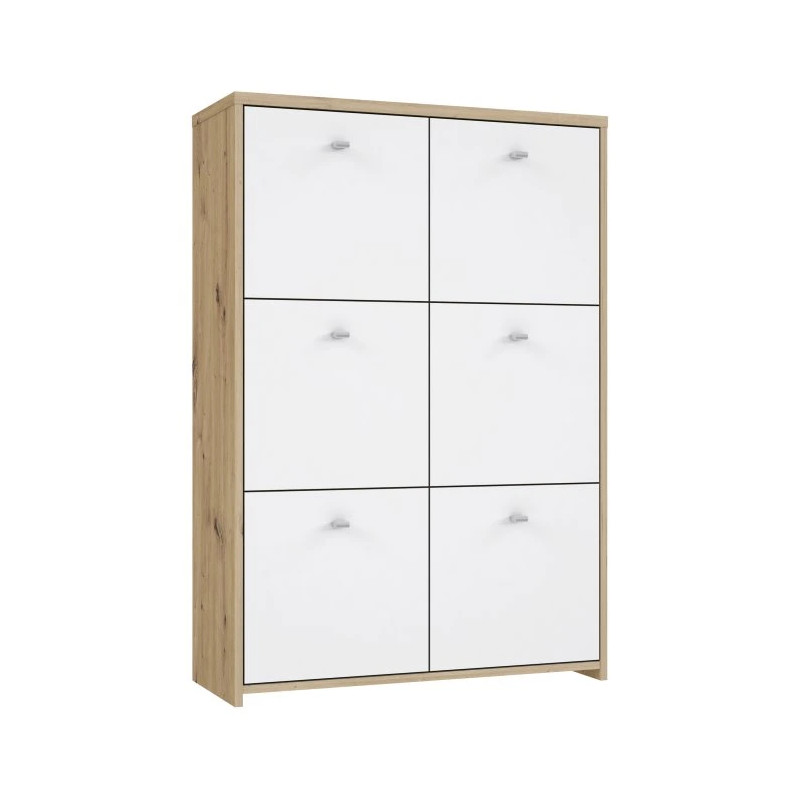 Wysoka komoda z kolekcji Dąb Artisan/Biały to eleganckie i praktyczne rozwiązanie do każdego wnętrza. Jej funkcjonalność opiera się na sześciu pojemnych szafkach oraz czterech wewnętrznych półkach, które umożliwiają uporządkowane przechowywanie. Jasne, białe fronty kontrastujące z dekorem Dąb Artisan rozjaśniają wnętrze i wprowadzają do niego przytulny, nowoczesny klimat. Duży blat pozwala na eksponowanie dekoracji, roślin czy pamiątek. Komoda idealnie sprawdzi się w salonie, sypialni, przedpokoju, a nawet domowym biurze.