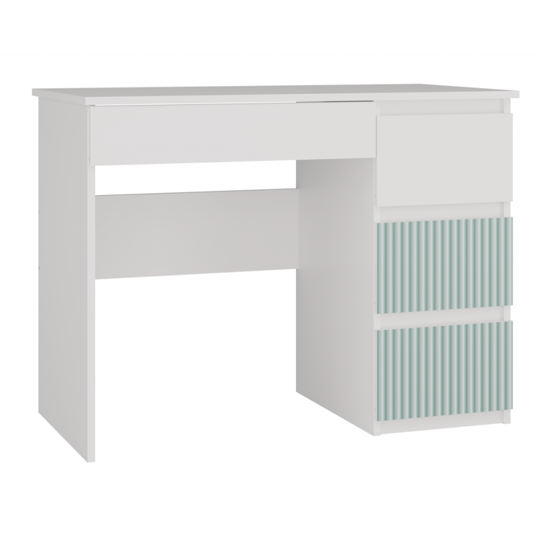 - 3 pojemne wysokie szuflady z prawej strony (w tym 2 szuflady z miętowymi wzorami) i 1 niska z lewej strony pod blatem