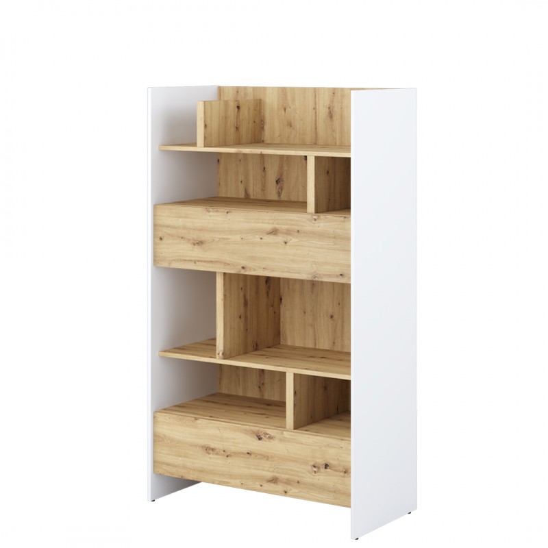 Regał BC-27 to niezwykle praktyczny i stylowy element wyposażenia, który znajdzie zastosowanie w różnych pomieszczeniach domowych, takich jak sypialnia, salon czy pokój dziecięcy. Jego funkcjonalny kształt umożliwia przechowywanie i prezentację ważnych przedmiotów w danym wnętrzu. Posiada półki z przegrodami oraz dwie pojemne szuflady, które pomogą uporządkować i przechować różnorodne drobiazgi.