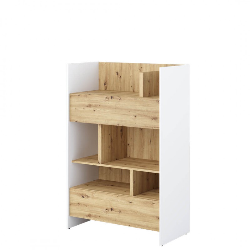 Regał BC-26 to niezwykle praktyczny i stylowy element wyposażenia, który znajdzie zastosowanie w różnych pomieszczeniach domowych, takich jak sypialnia, salon czy pokój dziecięcy. Jego funkcjonalny kształt umożliwia przechowywanie i prezentację ważnych przedmiotów w danym wnętrzu. Posiada półki z przegrodami oraz dwie pojemne szuflady, które pomogą uporządkować i przechować różnorodne drobiazgi.