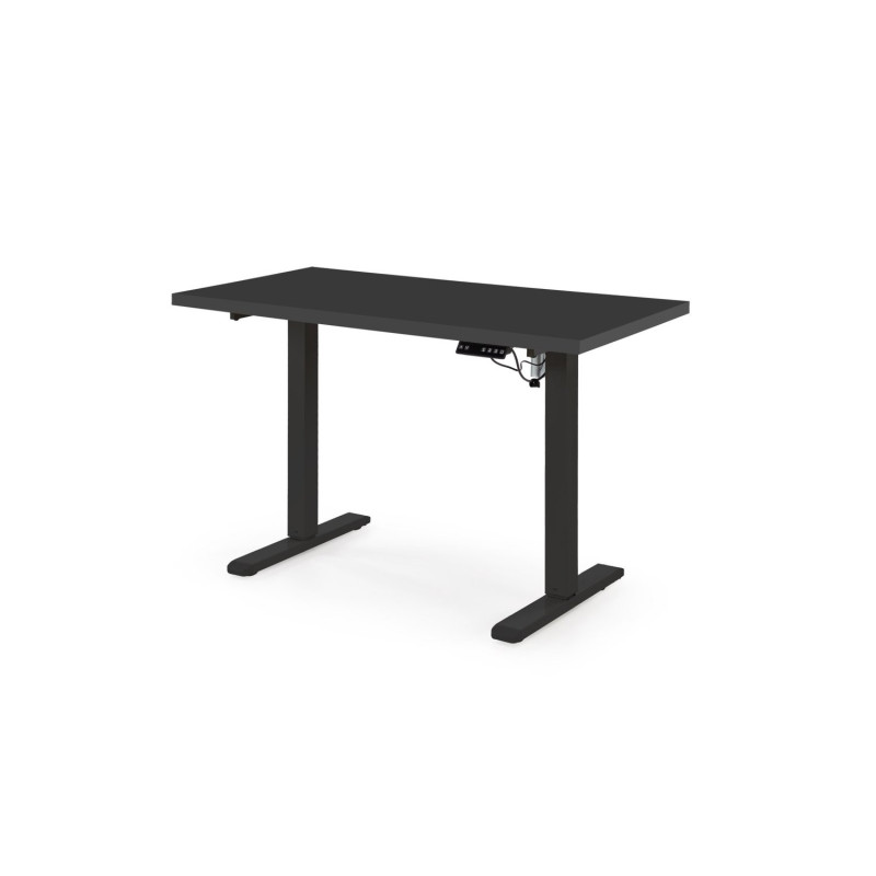 Biurko ErgoDesk 120 w całości w kolorze czarnym to minimalistyczne i funkcjonalne rozwiązanie do nowoczesnych przestrzeni biurowych oraz domowego home office. Regulowana wysokość w zakresie od 75 do 120 cm umożliwia ergonomiczne dopasowanie stanowiska pracy, zapewniając komfort zarówno podczas pracy siedzącej, jak i stojącej. Blat z płyty meblowej laminowanej w połączeniu ze stalowym stelażem malowanym proszkowo gwarantuje wysoką stabilność, trwałość oraz nowoczesny wygląd.