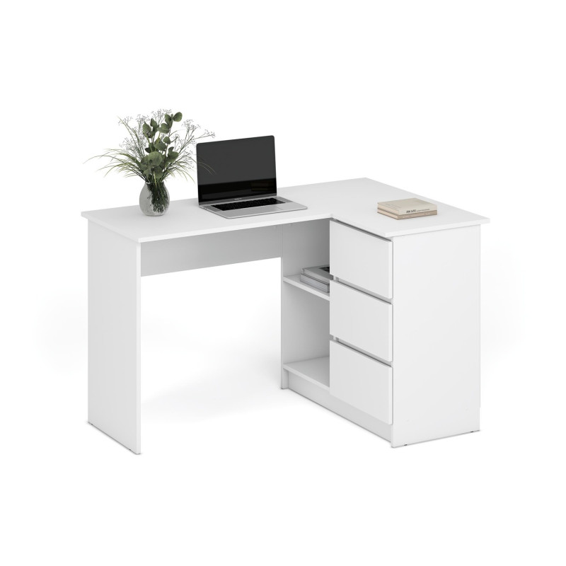 Biurko Begano Office 124 to praktyczne i uniwersalne rozwiązanie do domowego biura, gabinetu lub pokoju młodzieżowego. Klasyczny styl wykonania oraz jasna, biała kolorystyka sprawiają, że mebel łatwo dopasować do różnych aranżacji wnętrz. Duża powierzchnia robocza zapewnia komfort pracy i nauki, a wykonanie z płyty meblowej laminowanej gwarantuje trwałość oraz odporność na codzienne użytkowanie.