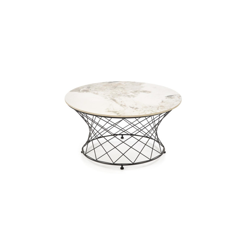 Ława Alessio to stylowy mebel, który łączy klasyczną elegancję z nowoczesnym designem, idealnie wpisując się w aranżacje salonów o różnym charakterze. Okrągły blat w wykończeniu beżowego marmuru nadaje wnętrzu lekkości i luksusowego wyglądu, a kontrastujący czarny metalowy stelaż podkreśla nowoczesną formę ławy.