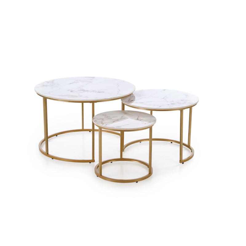 Zestaw 3 Ław Gildora Biały Marmur / Złoty – luksusowy styl glamour w nowoczesnym wydaniu