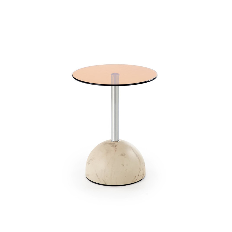 Ława Ariano to kompaktowy, nowoczesny stolik, który doskonale uzupełni eleganckie i minimalistyczne wnętrza. Okrągły blat z dymionego szkła nadaje meblowi lekkości i subtelnej elegancji, a metalowy stelaż w odcieniu beżowo-srebrnym wprowadza ciepły, nowoczesny akcent. To idealna propozycja do salonu jako stolik kawowy lub pomocniczy.