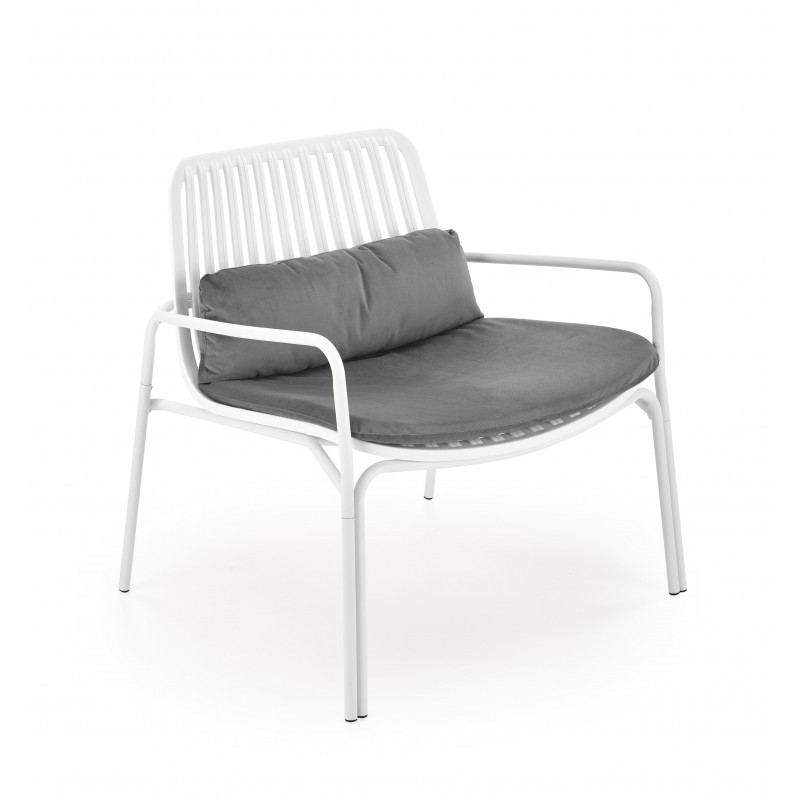 Stworzony z połączenia solidnej stali malowanej proszkowo na biało, polipropylenu i tkaniny w delikatnym odcieniu popielatego, fotel Cascade to harmonijne połączenie nowoczesności i funkcjonalności.