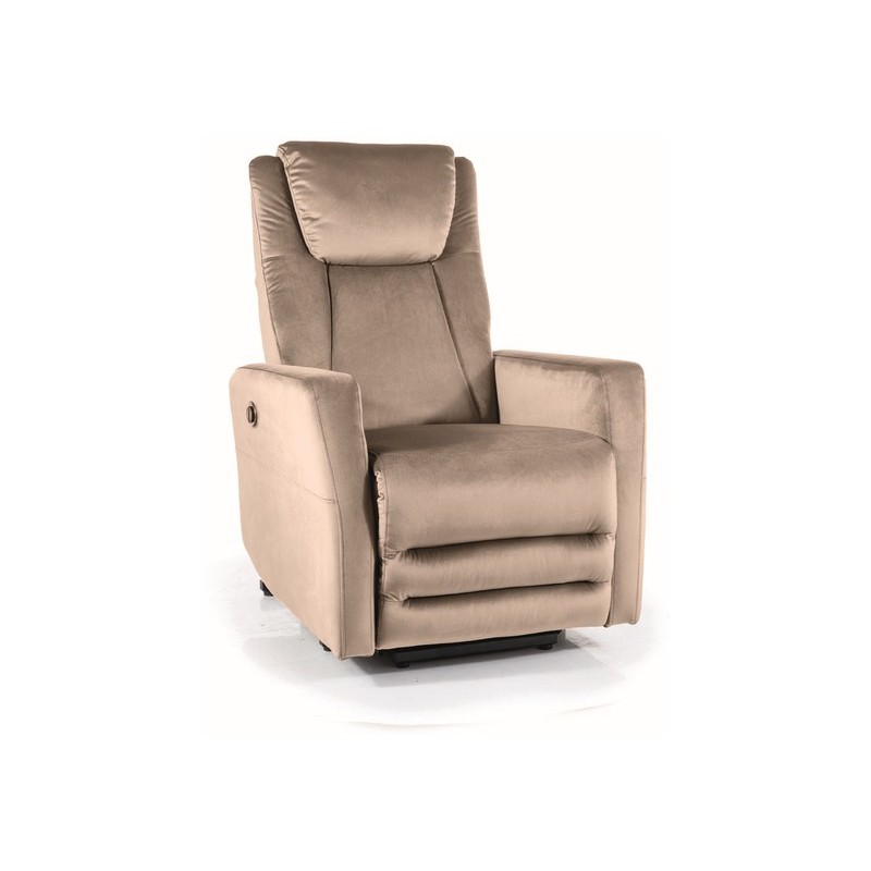Fotel pionizujący Adonis Velvet od Signal meble to idealny mebel do salonu, pokoju dziennego oraz przestronnej sypialni. Za pomocą pilota przewodowego można wysunąć podnóżek i obniżyć oparcie do pozycji półleżącej jak również podnieść fotel ułatwiając zejście z niego. Funkcja rozkładania pozwala użytkownikowi zaznać pożądanego odpoczynku i pełnego relaksu przed telewizorem lub podczas czytania ulubionej lektury. Dzięki funkcji podnoszenia Mebel doskonale sprawdzi się jako fotel dla starszych osób lub jako komfortowy mebel dla osób z problemami z poruszaniem się. Wysokie oparcie, miękkie siedzisko oraz pięknie opalizujący kolor tapicerki czynią fotel wyjątkowym meblem. Fotel został wyposażony dodatkowo w gniazdo USB pozwalające wygodnie naładować urządzenia elektroniczne oraz kieszeń. Dzięki miłej w dotyku tkaninie i wymienionym zaletom stanie się on ulubionym meblem każdego domownika.