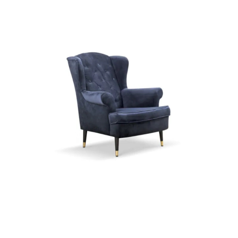 Fotel Venice doskonale współgra z sofą z tej samej kolekcji, tworząc spójną całość. Niemniej jednak, dzięki swojemu eleganckiemu wyglądowi, może równie dobrze pasować do wnętrz wyposażonych w różne zestawy mebli wypoczynkowych. To tapicerowane krzesło wyróżnia się wyjątkowym designem boków i podłokietników. Na oparciu znajdują się stylowe pikowania oraz ozdobne guziczki, które nadają pomieszczeniu luksusowy i królewski charakter. Całość jest uzupełniona o nowoczesne smukłe nóżki w kolorze czarno-złotym.