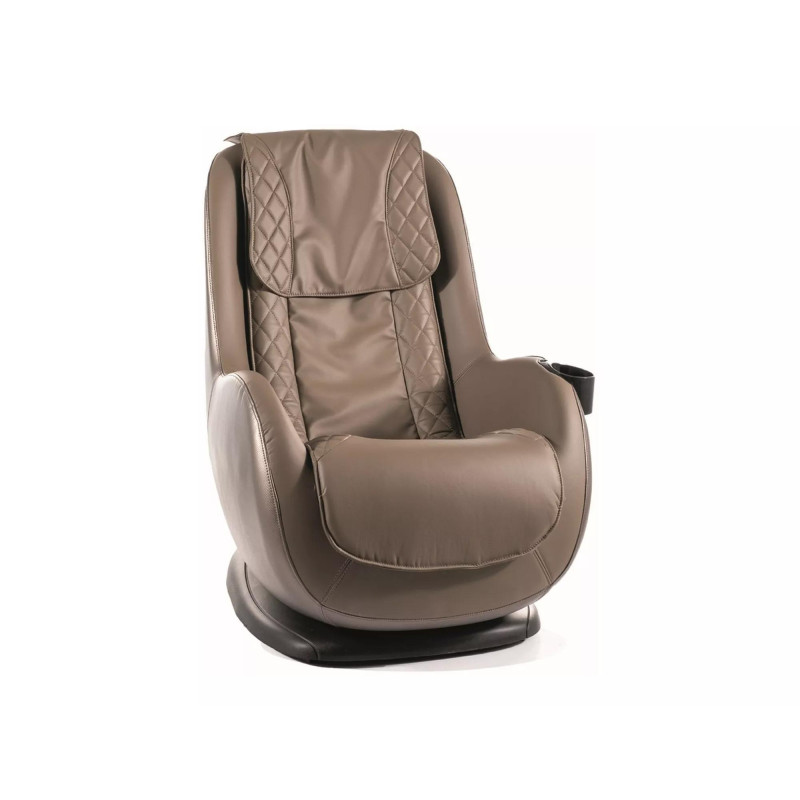 Fotel masujący, skóra syntetyczna, kolor: beż, tap. 224 + brąz, tap. 225 (tył). Port USB, uchwyt na kubek. Do wyboru kilka trybów masażu z możliwością regulacji szerokości pola i miejsca masowania.