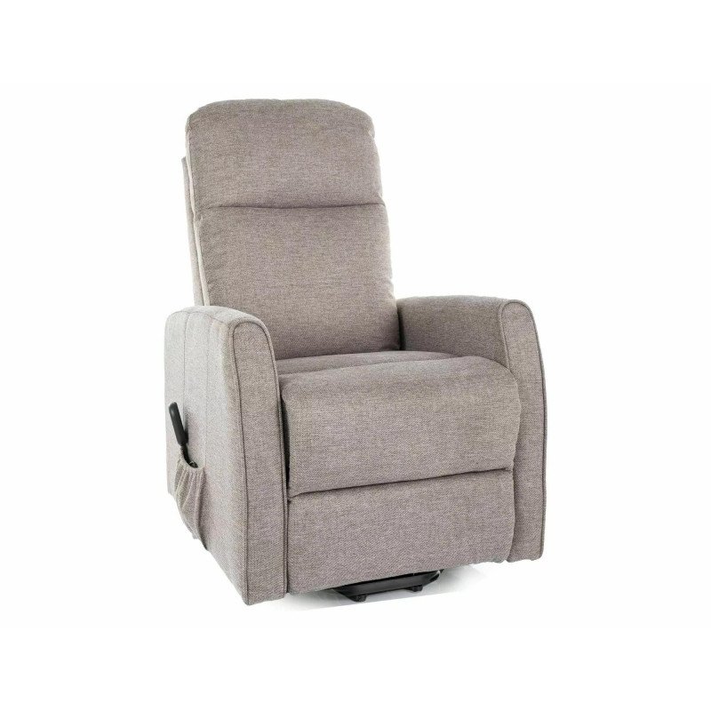 Fotel rozkładany, tapicerka: tkanina Brego, stelaż: metal, kolor: 34 beżowy / czarny. Rozkładanie elektryczne, funkcja: pionizacji.