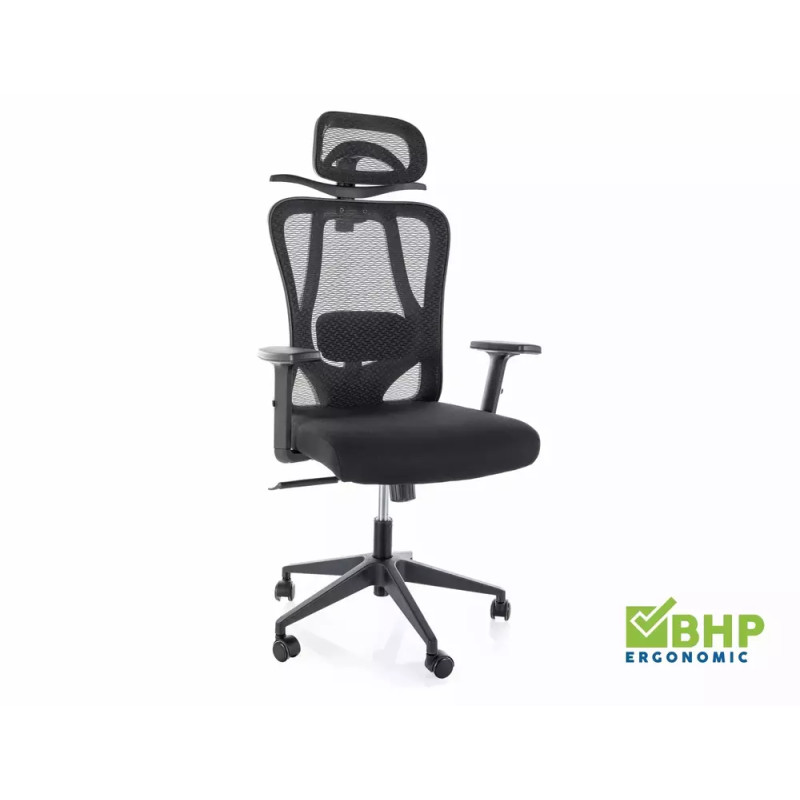 Q-080 to nowoczesny fotel obrotowy ergonomiczny, zaprojektowany z myślą o wygodzie i zdrowiu podczas codziennej pracy biurowej. Model spełnia wymogi BHP dotyczące krzeseł biurowych zgodnie z rozporządzeniem Dz. U. poz. 2367, dzięki czemu doskonale sprawdzi się w biurze oraz w domowym gabinecie. Tapicerowany połączeniem siatki i tkaniny membranowej w kolorze czarnym, zapewnia odpowiednią wentylację oraz wysoki komfort użytkowania.