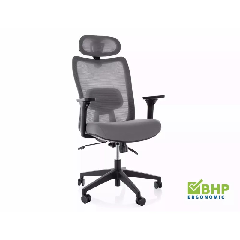 Fotel obrotowy ergonomiczny Q-724H szary – komfortowa ergonomia pracy zgodna z BHP