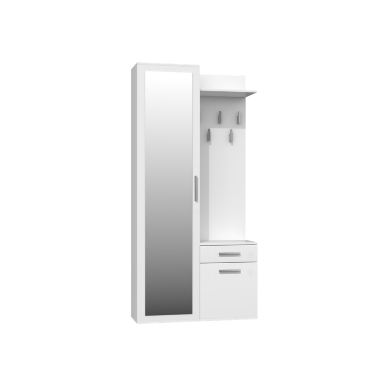 - Szafę z lustrem, szafkę oraz wieszak można zamontować blisko siebie, jak i zarówno rozsunąć.