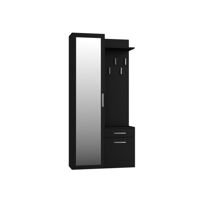 - Szafę z lustrem, szafkę oraz wieszak można zamontować blisko siebie, jak i zarówno rozsunąć.