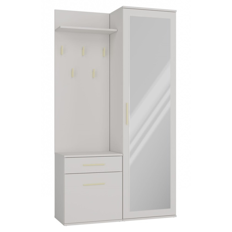 - Szafę z lustrem, szafkę oraz wieszak można zamontować blisko siebie, jak i zarówno rozsunąć.