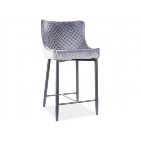 Miękkie siedzisko hokera zachwyca swoim pokryciem z aksamitnej tkaniny. Materiał jest przyjemny w dotyku i został ozdobiony eleganckimi pikowaniami. Nogi krzesła wykonane są z metalu i pomalowane na matowy czarny kolor, co dodaje mu nowoczesnego i stylowego wyglądu. Dodatkową wygodę użytkowania zapewnia podpórka na nogi.