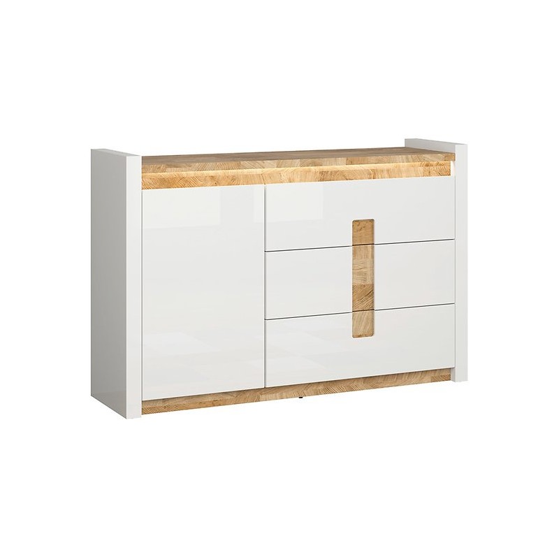- Stylowa komoda Alameda sprawdzi się jako podręczny schowek, w którym zorganizujesz różnego rodzaju przedmioty. Posłużą Ci w tym 3 pojemne szuflady oraz szafka.