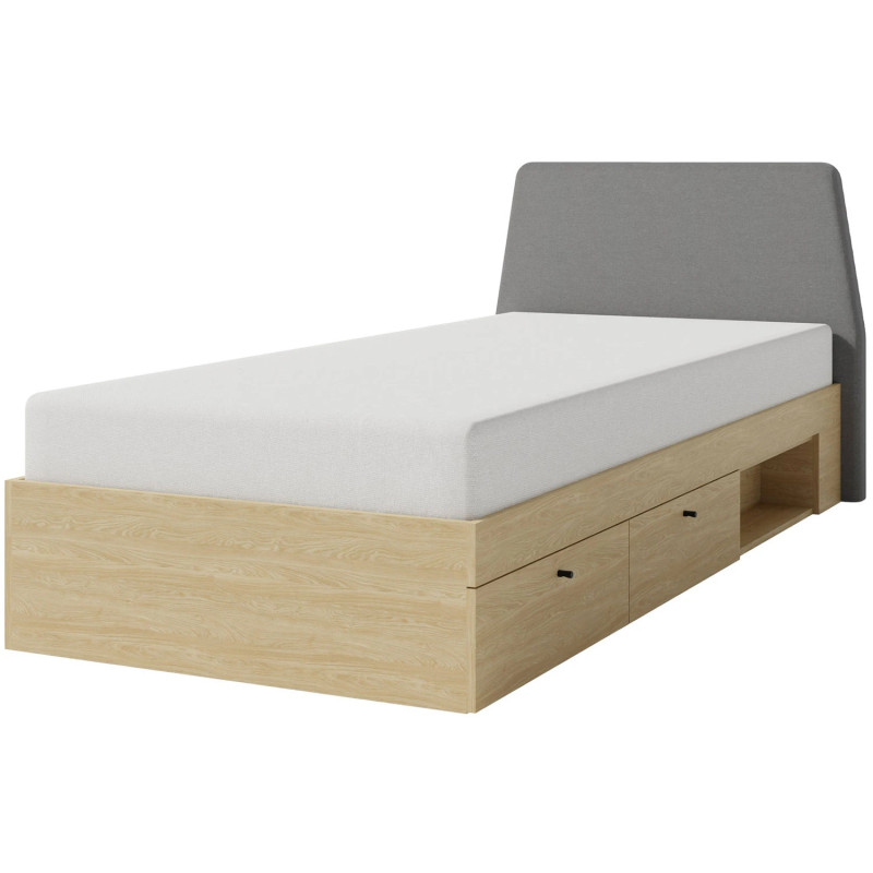 Łóżko o wymiarach 90x200 cm oferuje wygodną przestrzeń do spania, zapewniając komfortowy odpoczynek po intensywnym dniu. Solidna konstrukcja z wysokiej jakości materiałów gwarantuje trwałość i stabilność, a eleganckie połączenie kolorów nadaje wnętrzu świeżości i nowoczesności.