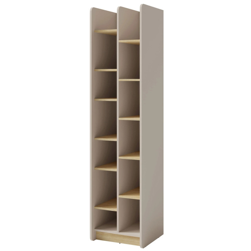 Regał z kolekcji Alessio w kolorze beż + dąb olejowany to stylowy i funkcjonalny mebel, stworzony z myślą o pokojach nastolatków. Wyposażony w otwarte wnęki, regał oferuje mnóstwo miejsca do przechowywania i eksponowania książek, dekoracji czy szkolnych akcesoriów.