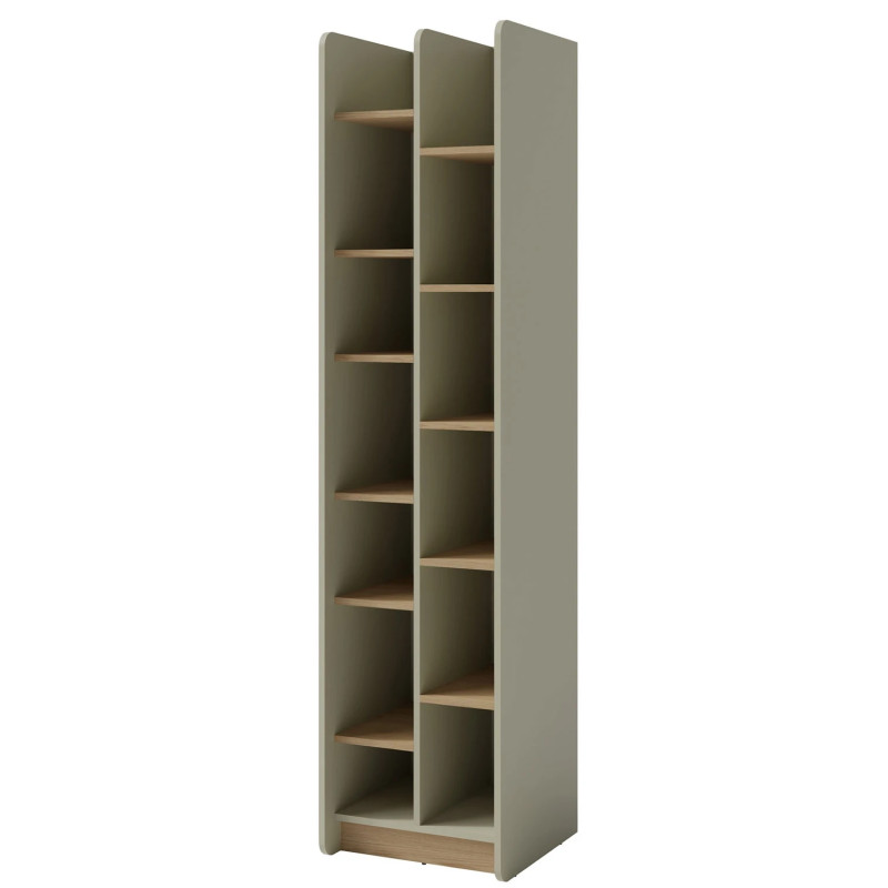 Regał z kolekcji Alessio w kolorze eukaliptus + Dąb Baltic Dune to stylowy i funkcjonalny mebel, stworzony z myślą o pokojach nastolatków. Wyposażony w otwarte wnęki, regał oferuje mnóstwo miejsca do przechowywania i eksponowania książek, dekoracji czy szkolnych akcesoriów.