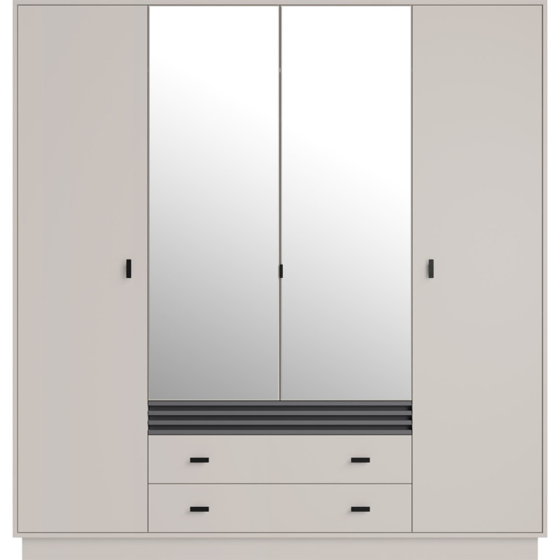 Szafa czterodrzwiowa Allmo Kaszmir + Antracyt to eleganckie i praktyczne rozwiązanie, które sprawdzi się zarówno w sypialni, jak i w garderobie. Jej nowoczesny design, podkreślony kontrastową wstawką w kolorze antracytu, doskonale komponuje się z jasnym odcieniem kaszmiru, tworząc stylowe i ponadczasowe połączenie.