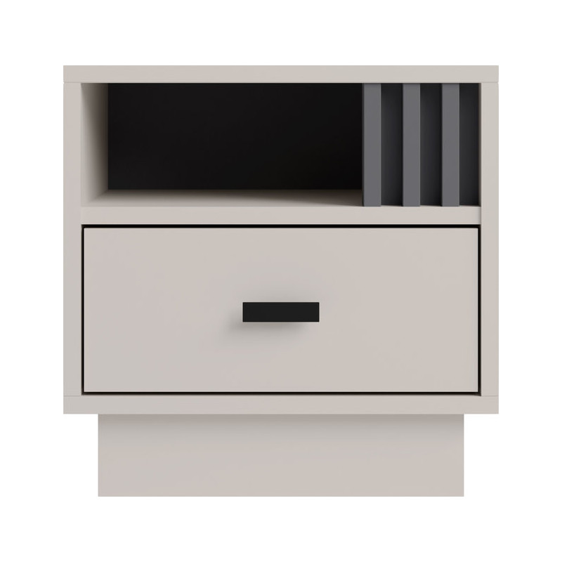 Szafka nocna Allmo Kaszmir + Antracyt to nowoczesny i funkcjonalny element wyposażenia sypialni. Łączy w sobie elegancki wygląd oraz praktyczne rozwiązania, które ułatwiają codzienne korzystanie z przestrzeni przy łóżku.