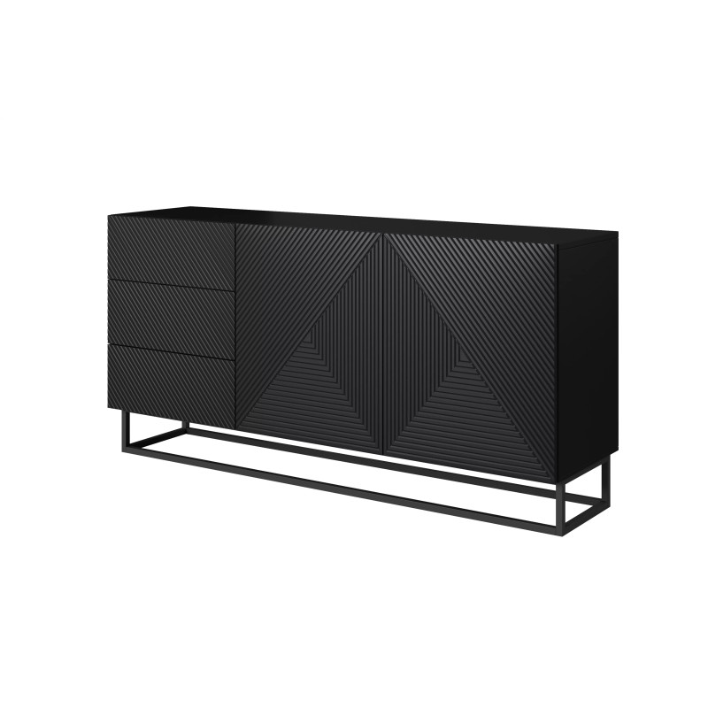 Komoda Asha to elegancka i funkcjonalna propozycja do nowoczesnych wnętrz, idealna do pokoju dziennego, sypialni czy jadalni. Dzięki zastosowaniu wysokiej jakości płyty laminowanej o grubości 16 mm oraz frezowanych frontów z płyty MDF, komoda łączy solidność z estetyką. Charakterystycznym akcentem jest geometryczny wzór na frontach, który wprowadza do wnętrza nowoczesny i subtelny charakter. Bezuchwytowy system otwierania oraz cichy domyk drzwi zapewniają wygodę użytkowania i komfort codziennego funkcjonowania.