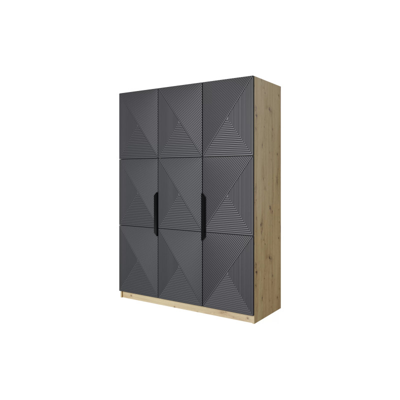 Szafa Asha to elegancki i funkcjonalny mebel, który doskonale wpasuje się w nowoczesne wnętrza, łącząc styl z praktycznością. Wykonana z laminatu w odcieniu dębu artisan, z ryflowanym frontem i metalowymi uchwytami, szafa wyróżnia się subtelną, ale elegancką estetyką. Jej minimalistyczny design sprawia, że będzie pasować do różnych stylów aranżacji – od nowoczesnych, przez skandynawskie, po loftowe. Dzięki prostocie formy i ponadczasowej kolorystyce, szafa Asha stanie się stylowym akcentem w każdym pomieszczeniu.