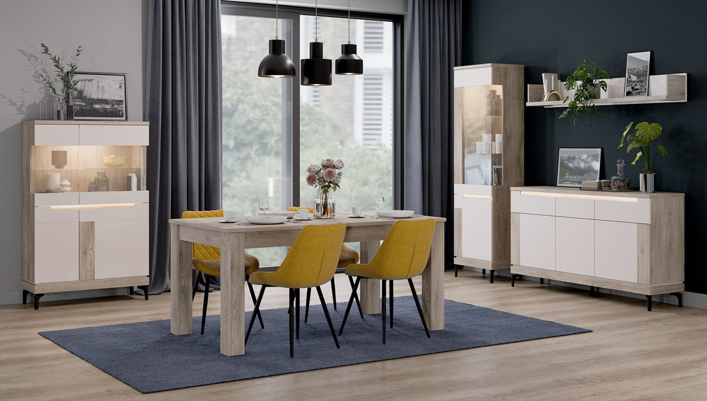 Półka wyróżnia się minimalistycznym wyglądem w kolorze dębu cremona z kaszmirowym dodatkiem, który wpasuje się w wiele aranżacji wnętrz.