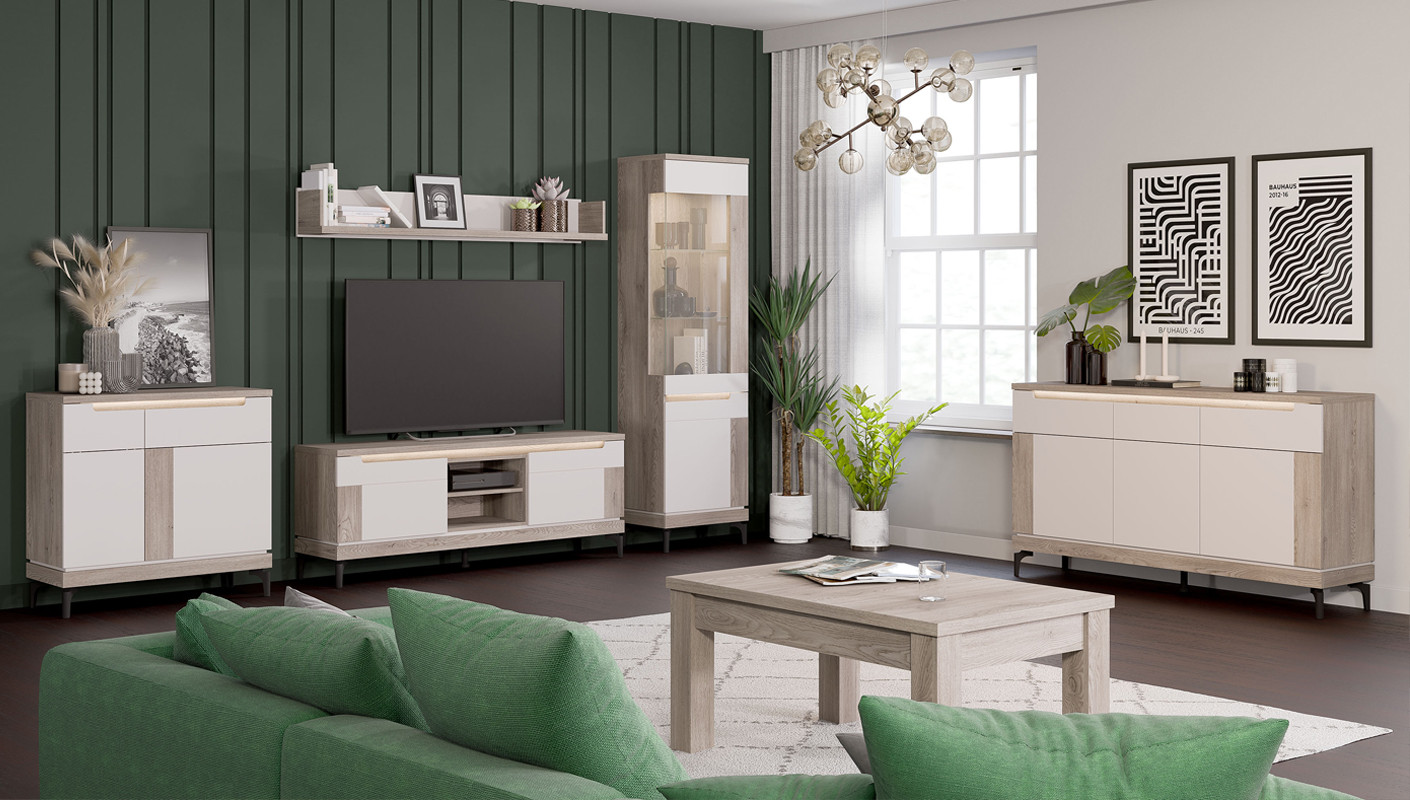 Stolik jest częścią kolekcji Aston, w której znajdują się również inne meble o spójnej stylistyce, doskonale pasujące do każdego nowoczesnego wnętrza.