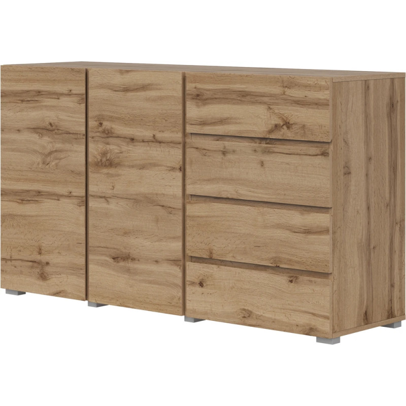 Komoda Asymetric 138 cm w kolorze dąb wotan łączy nowoczesny układ przechowywania z dekorem, który wprowadza do wnętrza cieplejszy, bardziej naturalny akcent. Zróżnicowane wnętrze ułatwia wygodne rozdzielenie rzeczy codziennego użytku, a nowoczesna bryła z asymetrycznymi frontami sprawia, że mebel wygląda wyraziście, ale nadal uniwersalnie.