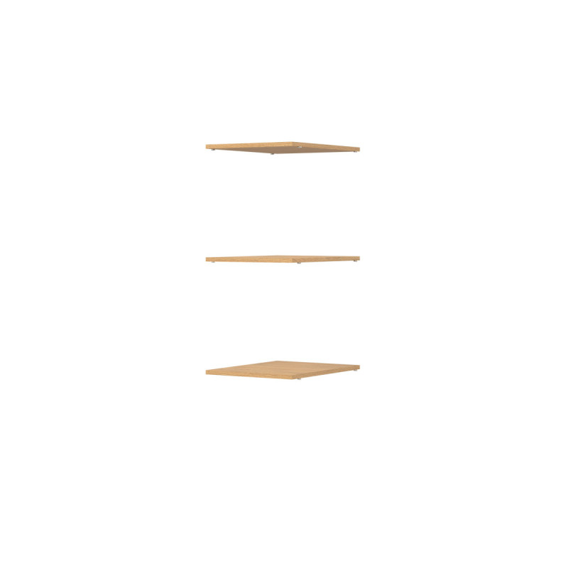 W zestawie znajdują się trzy półki, które służą do uzupełniania wyposażenia szafy ATE. Każda z półek jest wykonana z wysokiej jakości materiałów, zapewniając trwałość i stabilność. Są one idealnym rozwiązaniem do przechowywania odzieży, pościeli czy innych drobnych przedmiotów, pozwalając na lepszą organizację przestrzeni wewnątrz szafy.