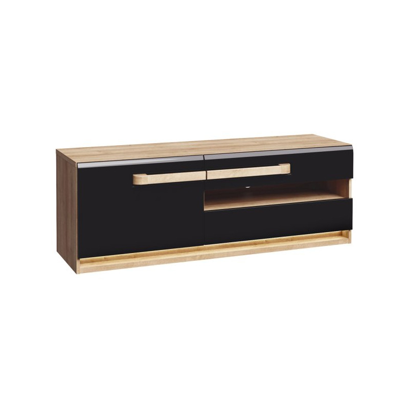 Szafka RTV 140 cm z oświetleniem Attention ATNT231LB dąb riviera/czarny połysk