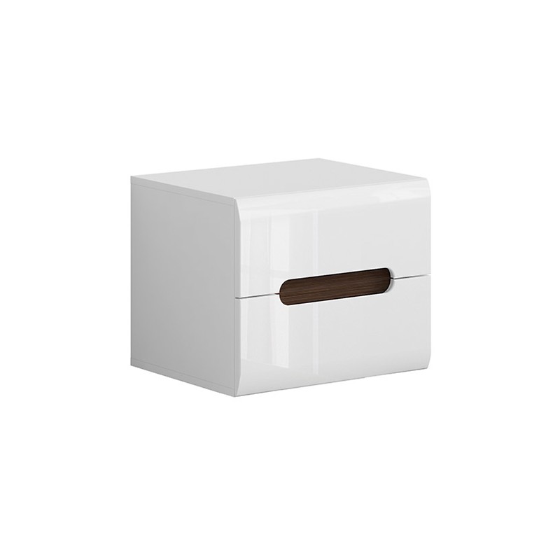 - Sekret uniwersalności? Biała kolorystyka korpusu i frontów biały wysoki połysk. W paczce otrzymujesz listwy ozdobne: dąb wenge, biały połysk lub czarny połysk – Ty decydujesz jaki charakter będzie miała szafka na budzik.
