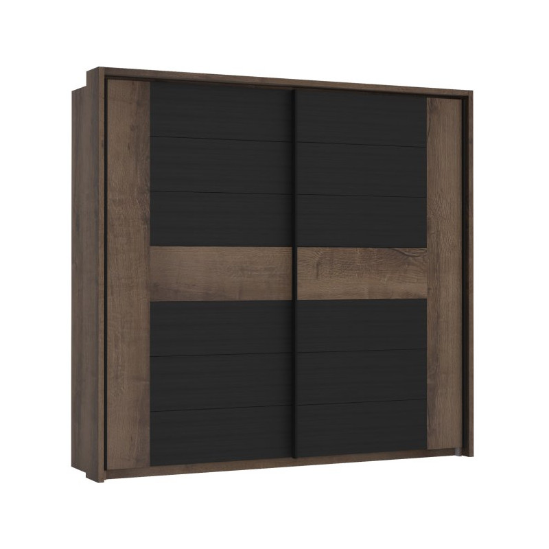 Szafa ubraniowa DLCS227E1 z kolekcji Bellevue marki Meble Forte to pojemna szafa ubraniowa z przesuwnymi drzwiami, która świetnie sprawdzi się w sypialni, garderobie lub przedpokoju. Ciekawe zestawienie dekoru dąb czarny z dębem szlachetnym nadaje meblowi nowoczesny i elegancki charakter, dzięki czemu stanie się zarówno praktycznym, jak i stylowym elementem wystroju wnętrza. Wnętrze szafy oferuje dużo miejsca do przechowywania odzieży, pościeli i innych tekstyliów, a przesuwny mechanizm drzwi ułatwia dostęp nawet w mniejszych pomieszczeniach.