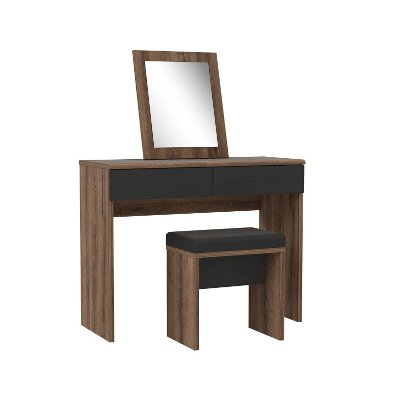 Toaletka została wykonana z wysokiej jakości płyty meblowej z odpornymi obrzeżami ABS, co gwarantuje trwałość i łatwość w utrzymaniu czystości. Dwie samodomykające się szuflady oferują praktyczną przestrzeń do przechowywania drobnych przedmiotów, a solidna konstrukcja sprawia, że mebel przez lata zachowa estetyczny wygląd. To idealne rozwiązanie dla osób ceniących połączenie designu i funkcjonalności w codziennym użytkowaniu.
