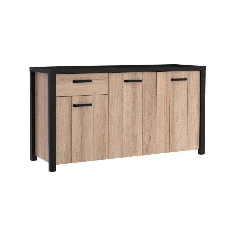 Komoda trzydrzwiowa Black Hill BLHK2311 to połączenie funkcjonalności i wyrazistego stylu, które doskonale odnajdzie się w nowoczesnych wnętrzach. Jej charakterystyczna forma nadaje przestrzeni elegancki wygląd, jednocześnie zapewniając praktyczne rozwiązania do przechowywania.
