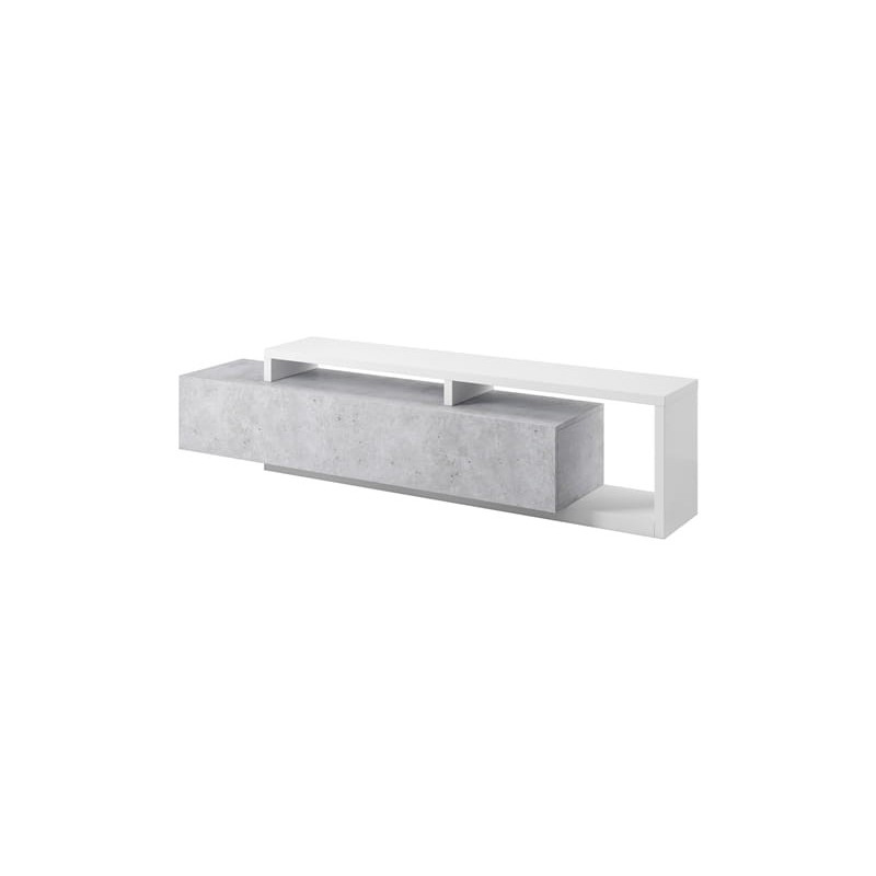 Szafka RTV BOTA Biały / Beton Colorado to szeroki, nowoczesny mebel do salonu, który doskonale sprawdzi się jako baza pod telewizor oraz praktyczna przestrzeń do przechowywania sprzętu multimedialnego. Szerokość 219 cm zapewnia wygodną powierzchnię użytkową i dobrze prezentuje się w strefie RTV.