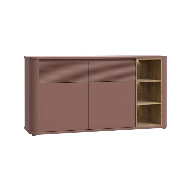 Komoda BTHK233-Q191 z kolekcji BREATHTAKER to funkcjonalny i stylowy mebel, który doskonale dopełni nowoczesne wnętrze w stylu MODERN. Dzięki dwóm pojemnym szufladom oraz czterem praktycznym półkom zyskasz przestrzeń do przechowywania wszystkich niezbędnych przedmiotów – od dokumentów po tekstylia i akcesoria codziennego użytku. Blat komody to idealne miejsce na ekspozycję dekoracji, ramek ze zdjęciami czy pamiątek rodzinnych. Efektowne połączenie dekorów Terakota i Dąb Mauvella sprawia, że mebel przyciąga wzrok i wnosi do pomieszczenia ciepło oraz charakter. Komodę możesz z łatwością skomponować z innymi elementami z kolekcji BREATHTAKER, tworząc harmonijną aranżację.