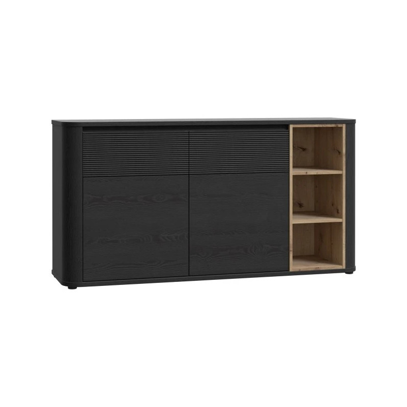 Komoda BTHK233-Q191 z kolekcji BREATHTAKER w dekorze Dąb Cabezone i Dąb Artisan to stylowy i praktyczny mebel, który doskonale dopełni każde wnętrze urządzone w duchu nowoczesnej elegancji. Dzięki dwóm szufladom oraz czterem półkom zyskasz mnóstwo miejsca na przechowywanie – od dokumentów po domowe akcesoria. Górny blat świetnie sprawdzi się jako przestrzeń do ekspozycji zdjęć, roślin czy dekoracji. Ciepłe odcienie drewna w tym połączeniu nadają aranżacji przytulnego, naturalnego charakteru. Dodatkowo mebel można wyposażyć w opcjonalne oświetlenie LED, które doda wnętrzu klimatu i podkreśli nowoczesny design kolekcji BREATHTAKER.