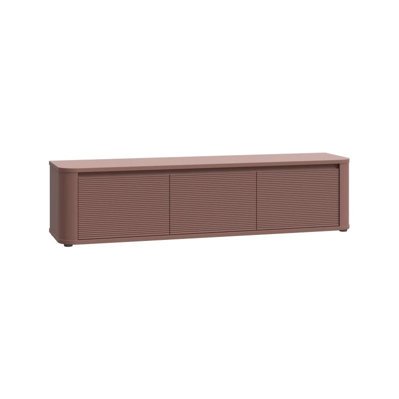 Szafka RTV 168 cm BREATHTAKER Terakota to nowoczesny mebel o wyrazistym charakterze, który doskonale uzupełni wnętrza w stylu modern. Ryflowane fronty i ciepły odcień terakoty nadają meblowi elegancji i oryginalnego wyglądu. Dzięki mechanizmowi cichego domyku korzystanie z szafki jest wygodne i niemal bezgłośne. Mebel oferuje trzy sposoby montażu: może być ustawiony bezpośrednio na podłodze, osadzony na dedykowanych wysokich nóżkach (do kupienia osobno) lub zamontowany na ścianie. Aby uzyskać wersję wiszącą, należy dokupić specjalne uchwyty montażowe. Szafka świetnie sprawdzi się pod telewizor do 75 cali, jednocześnie wnosząc do salonu ciepło i nowoczesny styl.