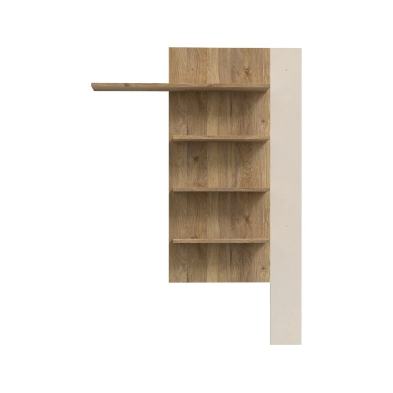 Półka pionowa 130 cm BREATHTAKER Piaskowy / Dąb Mauvella to stylowy i funkcjonalny element wyposażenia, który doskonale uzupełni aranżację salonu lub strefy wypoczynkowej. Jej efektowne połączenie dekorów – ciepłego Dębu Mauvella i jasnego Piaskowego – tworzy ciepły, nowoczesny akcent, który świetnie komponuje się z pozostałymi meblami z kolekcji BREATHTAKER. Półka jest idealna do stylowej ekspozycji książek, dekoracji, pamiątek czy rodzinnych zdjęć, a dzięki możliwości montażu elementu w dekorze Piaskowym po lewej lub prawej stronie, dopasujesz ją do swojej przestrzeni i aranżacji. To doskonały sposób na praktyczne przechowywanie i dekorację w jednym.