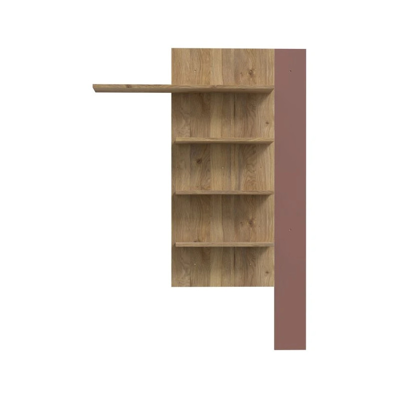 Półka pionowa 130 cm BREATHTAKER Terakota / Dąb Mauvella to funkcjonalny i designerski element, który doskonale sprawdzi się w nowoczesnym salonie. Wyraziste połączenie dekorów – ciepłej Terakoty i szlachetnego Dębu Mauvella – dodaje wnętrzu stylu i elegancji, idealnie komponując się z pozostałymi meblami z kolekcji BREATHTAKER. Półka świetnie sprawdzi się jako miejsce do ekspozycji książek, nagród, pamiątek lub dekoracji, a także rodzinnych zdjęć. Element w kolorze Terakoty można zamontować zarówno po lewej, jak i po prawej stronie, co pozwala dopasować mebel do układu pomieszczenia i indywidualnych preferencji.