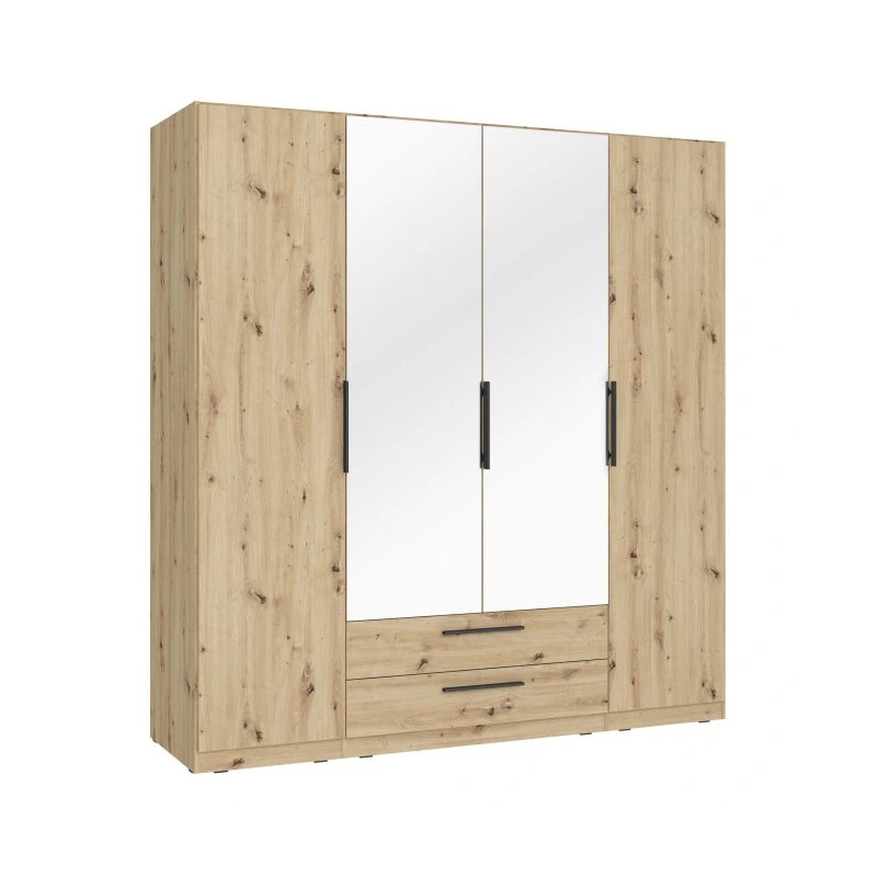 Szafa z lustrem i szufladami 200 cm CADIXO Dąb Artisan to nowoczesny i funkcjonalny mebel, który z powodzeniem odnajdzie się w każdej przestrzeni mieszkalnej. Czterodrzwiowa konstrukcja skrywa starannie zaplanowane wnętrze z półkami, drążkami oraz pojemnymi szufladami, co zapewnia wygodne i uporządkowane przechowywanie odzieży i akcesoriów. Duże lustro umieszczone na froncie nie tylko ułatwia codzienne przygotowania, ale też optycznie powiększa wnętrze. Kolor Dąb Artisan wprowadza do pomieszczenia ciepło i elegancję, idealnie komponując się zarówno z jasnymi, jak i ciemnymi dodatkami. Dzięki swojej uniwersalności szafa CADIXO świetnie sprawdzi się jako samodzielny mebel lub w zestawie z innymi szafami z tej samej kolekcji.