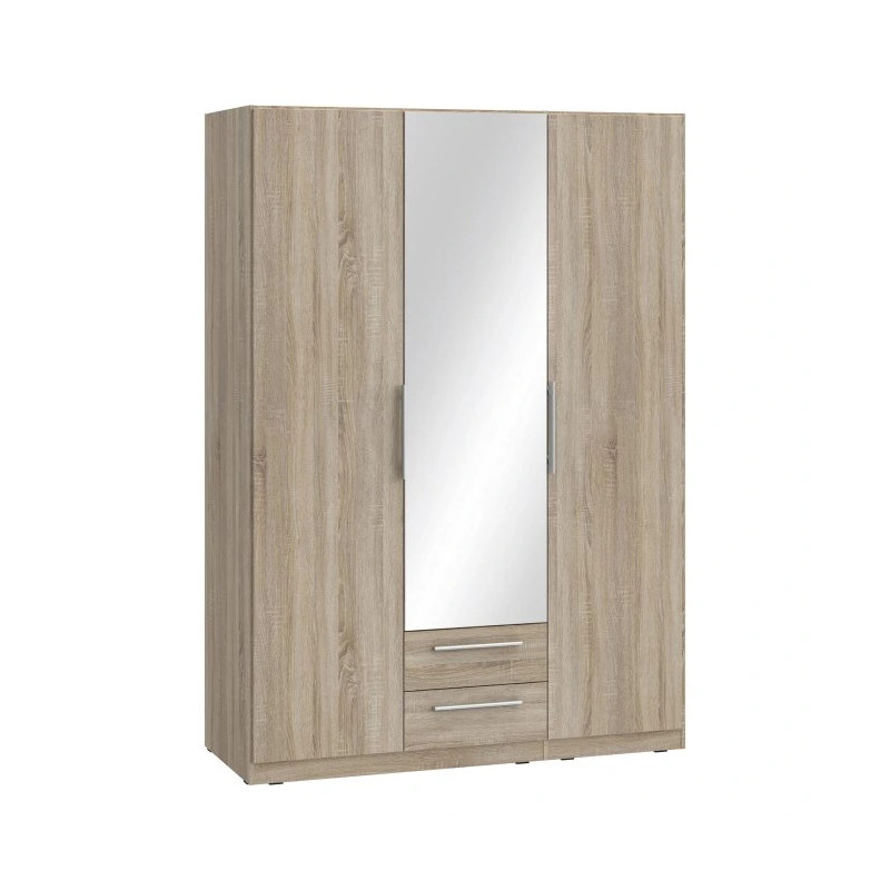 Trzydrzwiowa szafa z lustrem i szufladami CADIXO Dąb Sonoma to elegancki i funkcjonalny mebel idealny do sypialni, przedpokoju lub pokoju młodzieżowego. Dzięki obszernemu wnętrzu z drążkiem, półkami oraz dwiema szufladami, zapewnia wygodne przechowywanie ubrań, pościeli oraz rzeczy codziennego użytku. Lustro na środkowych drzwiach dodaje funkcjonalności i optycznie powiększa przestrzeń, a nowoczesne wzornictwo w dekorze Dąb Sonoma wprowadza do wnętrza ciepło i naturalny styl. Szafę można zestawić z innymi elementami kolekcji CADIXO, tworząc spójne i praktyczne aranżacje.