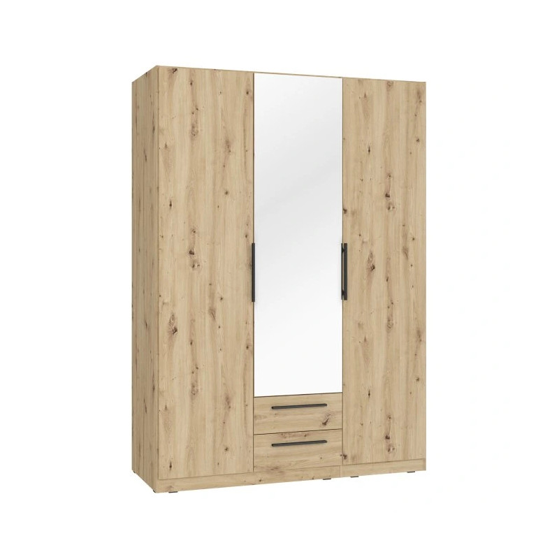 Trzydrzwiowa szafa z lustrem i szufladami CADIXO Dąb Artisan to doskonałe połączenie funkcjonalności i elegancji, które sprawdzi się zarówno w sypialni, jak i przedpokoju czy pokoju młodzieżowym. Jej obszerne wnętrze z drążkiem, półkami oraz dwiema szufladami zapewnia wygodne przechowywanie ubrań, pościeli i akcesoriów codziennego użytku. Lustro na środkowych drzwiach nie tylko pełni praktyczną funkcję, ale również optycznie powiększa przestrzeń. Nowoczesne wzornictwo i ciepły odcień Dąb Artisan idealnie wpisują się w aktualne trendy aranżacyjne, dodając wnętrzu naturalnego, przytulnego charakteru. Mebel świetnie komponuje się z innymi elementami kolekcji CADIXO, tworząc spójny i estetyczny zestaw.